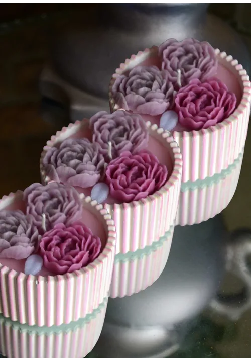 Handcrafted candle inspired by blooming peonies in a hand painted ceramic jar.
